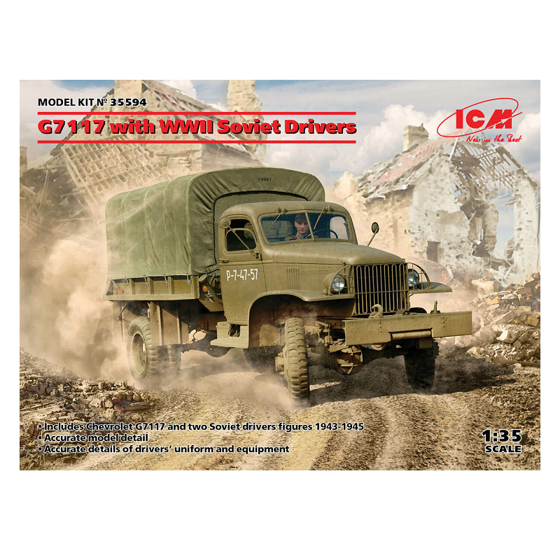 Le G7117 est une des versions du camion Chevrolet 1/2 tonne 4x4 produit en grande nombre par la firme Chevrolet pour équiper par l'armée des Etats-Unis et ses alliés pendant et après la Seconde Guerre mondiale. La maquette militaire ICM au 1/35 propose une reproduction de ce modèle, réf: 35594
