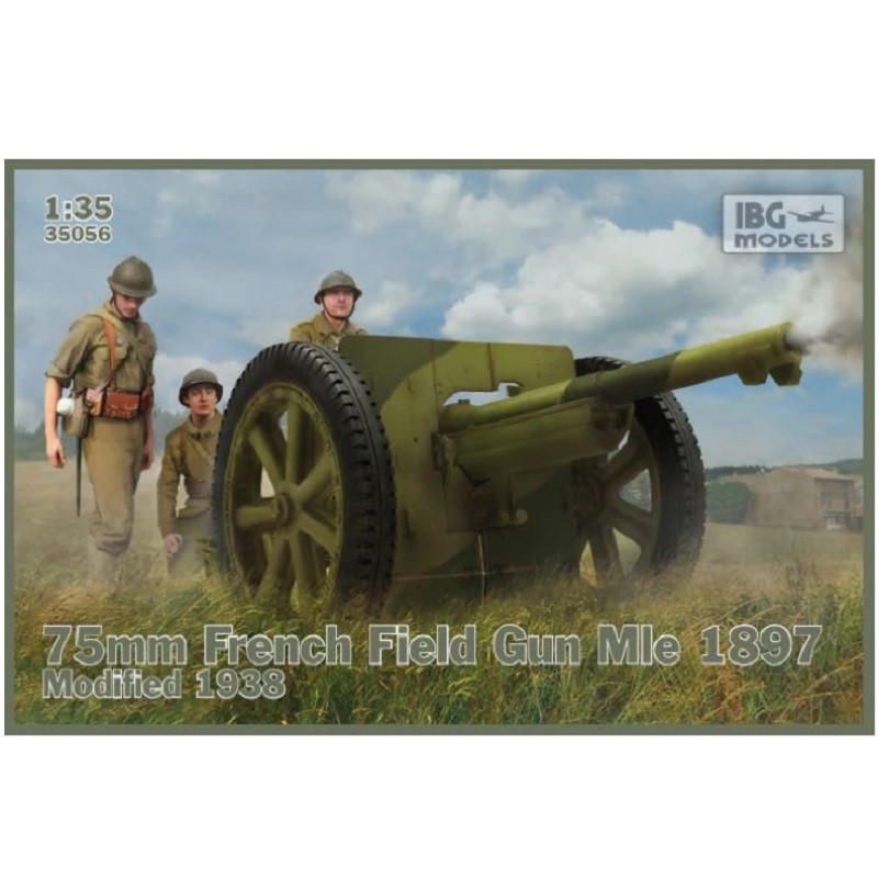 Cette maquette militaire IBG Model au 1/35 propose un canon de 75 mm, modèle1897, pièce d'artillerie de campagne de l'armée française, modifié en 1938 et utilisé lors de de la Seconde Guerre mondiale, réf : 35056