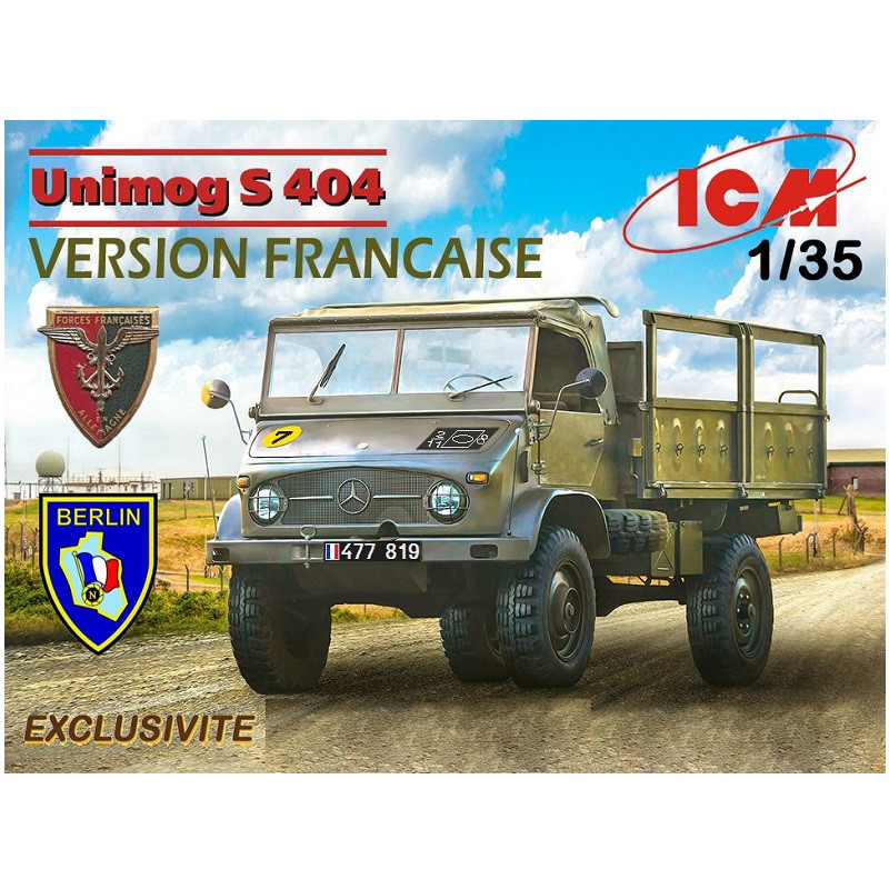 L' Unimog 404 , également appelé Unimog S et Unimog 404 S est un véhicule de la série Unimog de Mercedes-Benz, produit dans l'usine Unimog de Gaggenau de 1955 à 1980. Cette maquette militaire ICM au 1/35 est une édition limitée proposant les décorations pour réaliser une vesrion française, réf : 35135F