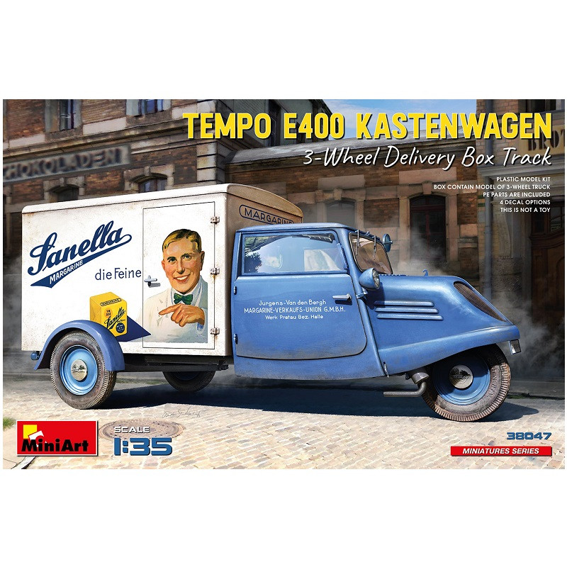 Tempo ou plus complètement Vidal & Sohn Tempo-Werke GmbH, était un constructeur automobile allemand installé à Hambourg. Les premiers tricycles Tempo 1 ont été créés à partir d'un mélange de moto et d'un plateau, qui se trouvait devant le conducteur. Dans le développement ultérieur, le poste de conduite a été déplacé à l'avant. La maquette militaire Miniart au 1/35 propose une reproduction de ce modèle, réf : 38047