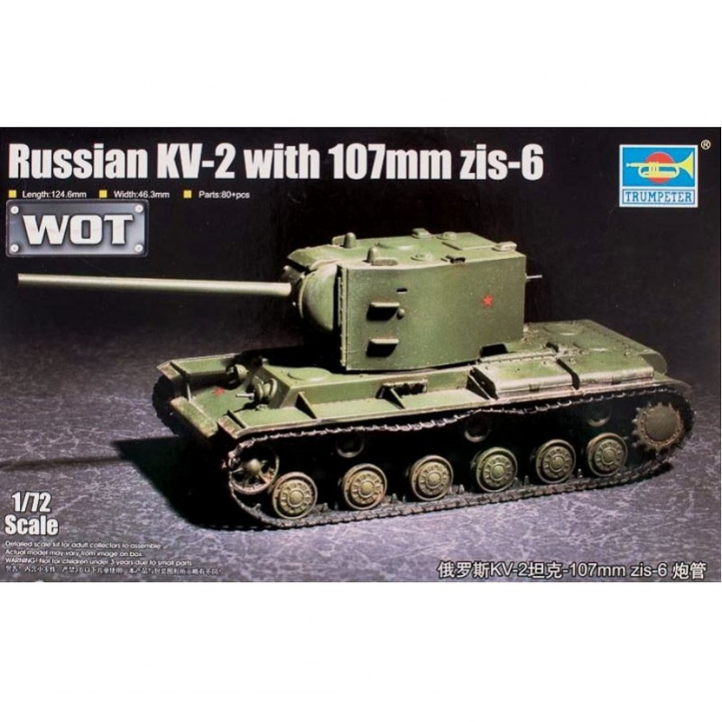 Le KV-2 est un char lourd soviétique de la Seconde Guerre mondiale, membre de la série des chars KV. La maquette militaire Trumpeter au 1/72 propose une reproduction de ce modèle, réf: 07162