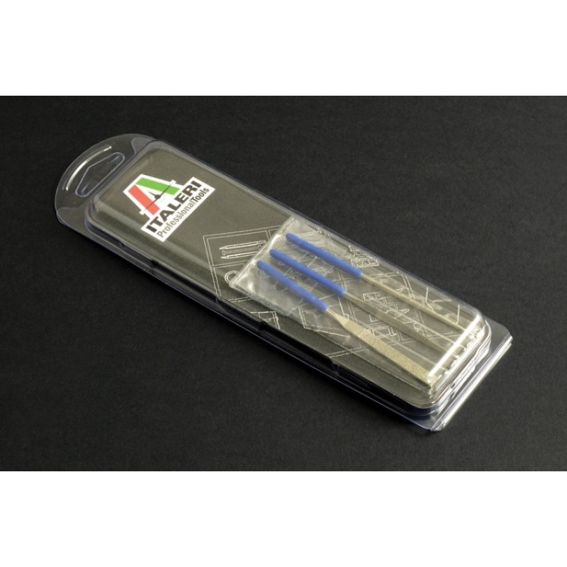 Ces 3 mini limes diamant Italeri vous permettront d'ébavurer vos pièces et réaliser la finition de vos modèles, réf: 50820