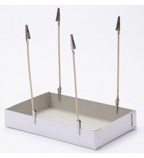 Ce sachet Gunze contient 24 pics en bois équipés de pinces croco à chaque bout pour vous permettre de saisir vos pièces de petites tailles en vous libérant les mains, réf: GT100