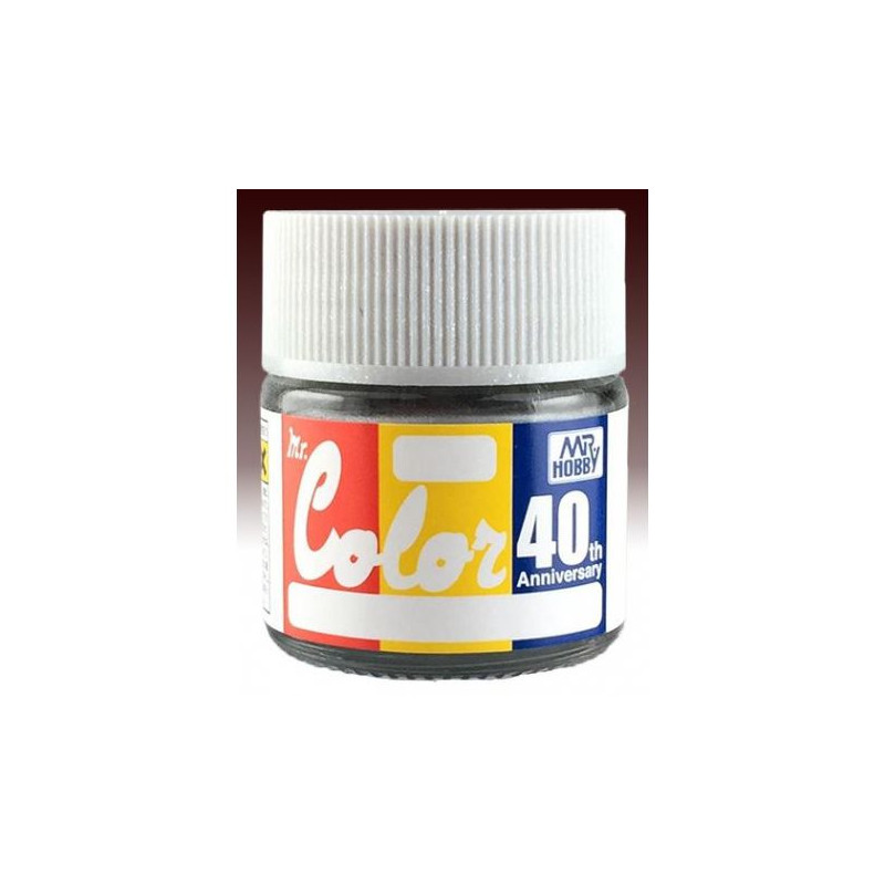 Pour le 40ème anniversaire de la marque, Mr Color a choisi de sortir une gamme de peinture enamel avec des coloris spéciaux. Pot de peinture enamel previous silver brillant, 10ml. A diluer avec du "Mr Color Thinner" (réf : T101, T102 ou T103), réf: AVC02