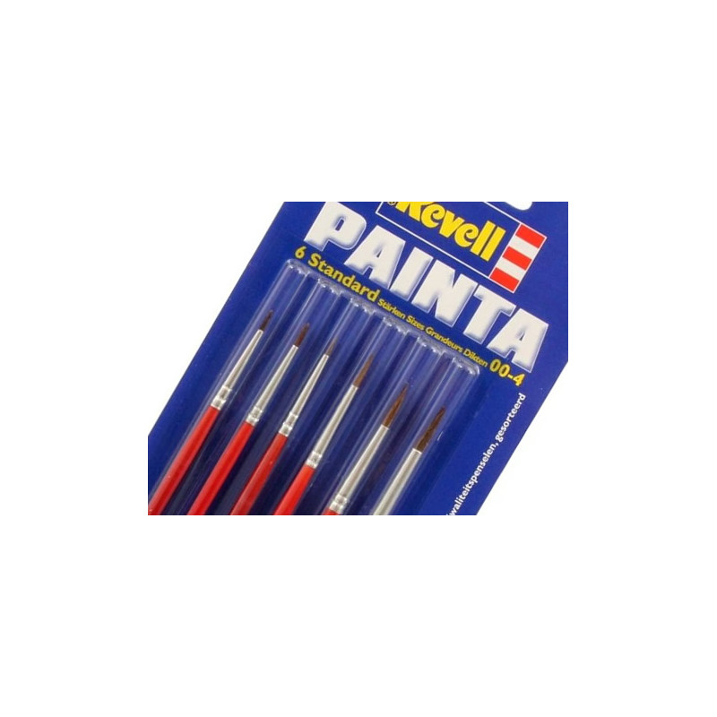 6 pinceaux standards Revell tailles 00 à 4 présentés en blister, réf : 29621