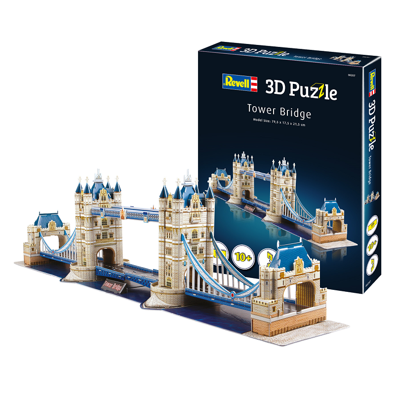 Le Tower Bridge de Londres est l'un des ponts les plus célèbres au monde et permet à 40 000 véhicules de traverser la Tamise chaque jour. Pour que les navires puissent également passer le pont construit en style néo-gothique, deux parties structurelles mobiles peuvent être soulevées jusqu'à 86 degrés. Du plaisir pour petits et grands ! Avec les puzzles Revell 3D, vous pouvez construire des bâtiments célèbres dans le monde entier, des horizons impressionnants ou des véhicules légendaires. Les composants en mousse découpés avec précision facilitent le montage - pas besoin de colle ou d'outils. Selon la taille et la complexité du modèle, le plaisir de construire peut varier de quelques minutes à plusieurs heures. Ce monument se compose de 120 pièces et mesure 795 x 175 mm une fois monté, réf : 00207