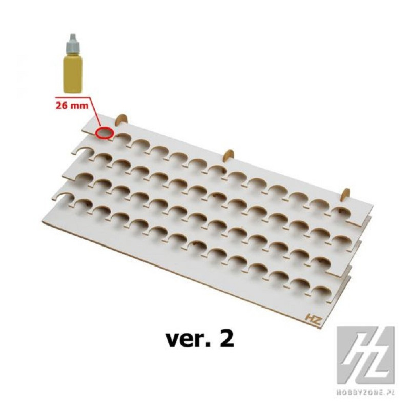 Support de stockage pour pots de peinture mesurant 42,5x18x9,5cm équipé de 54 espaces de 26mm, parfaitement adapté pour les pots Vallejo, Prince August 17ml.