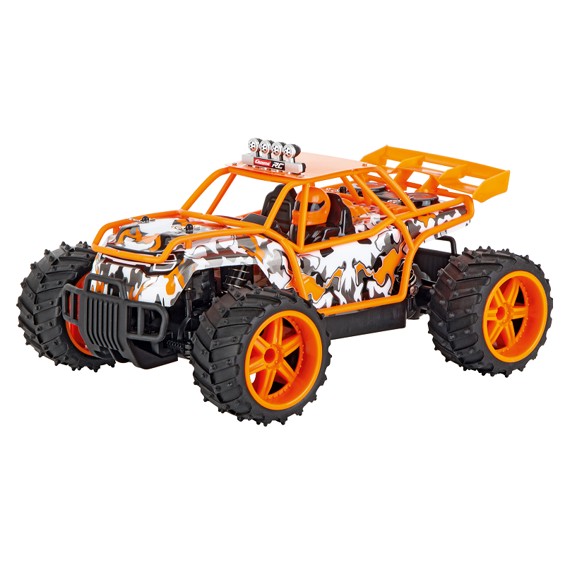 Le Truck Buggy est un buggy tout-terrain de 29 cm de long qui vous permettra de rouler jusqu'à 16 km/h, mais aussi de faire du tout terrain grâce à ses 4 roues motrices et à sa robustesse. La technologie 2,4 Ghz permet de jouer avec 16 véhicules en même temps. Échelle : 1/16, longueur: 28 cm, vitesse maxi 16 km/h, fréquence: 2,4 GhZ. À partir de 6 ans, réf : 370160015
