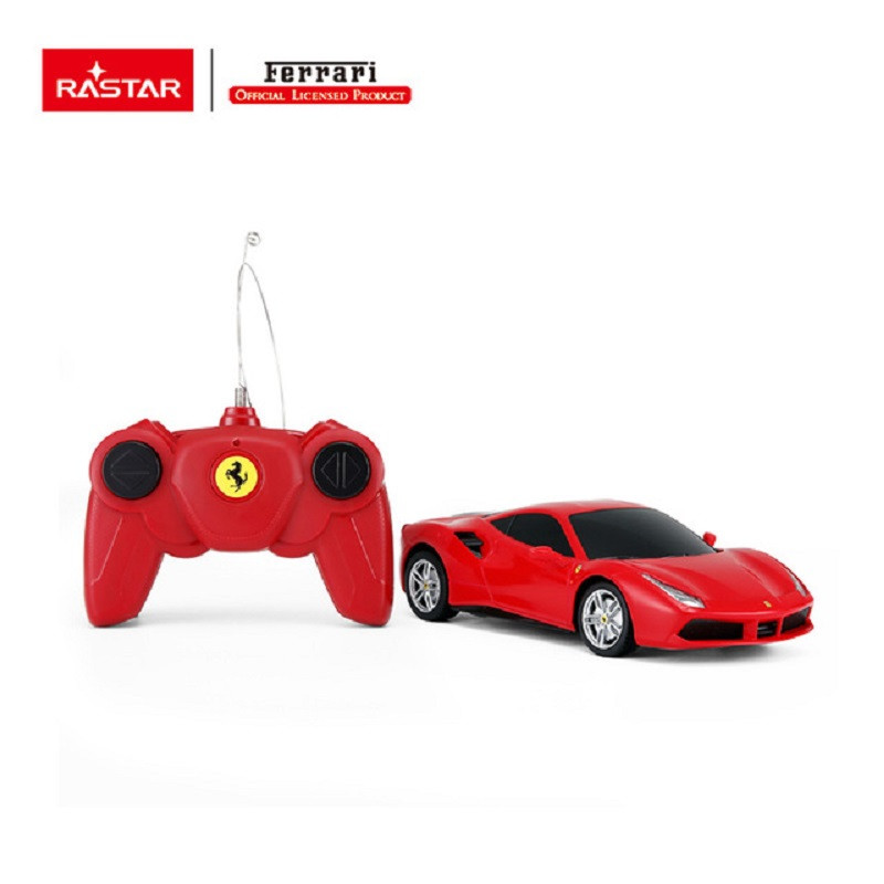Cette Ferrari 488 GTB est une voiture télécommandée à l'échelle 1/24. Elle fonctionne grâce à une télécommande 27 MHz et nécessite 5 piles AA (LR06). Elle mesure 170 x 75 x 65 mm, à partir de 6 ans, réf : 76000