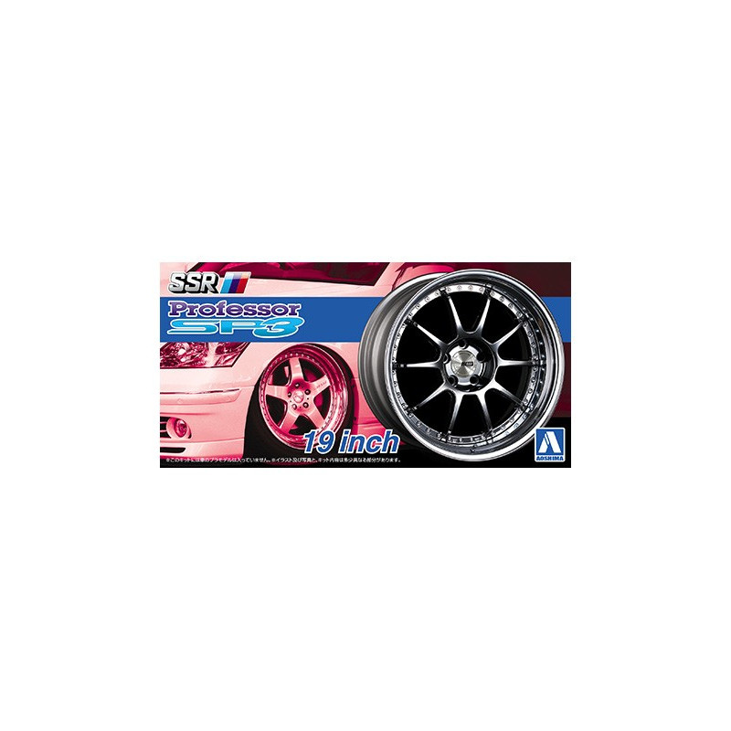 Cette boite maquette voiture Aoshima au 1/24 propose quatre jantes et quatre pneus SSR Professor SP3 en 19 pouces qui vous permettront de personnaliser vos réalisations, réf: 05254