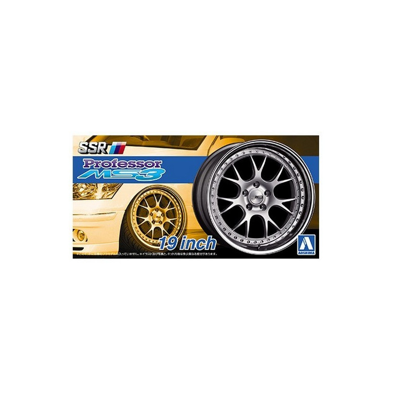 Cette boite maquette voiture Aoshima au 1/24 propose quatre jantes et quatre pneus SSR Professor MS3 en 19 pouces qui vous permettront de personnaliser vos réalisations, réf: 05255