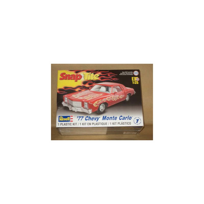 Lancée par le constructeur automobile américain Chevrolet en 1970, la Chevrolet Monte Carlo est à l'origine une voiture appartenant à un nouveau segment, celui des personal cars bon marché. La maquette voiture Revell au 1/25 reproduit le modèle 1977, réf: 85-1962. Il s'agit d'un kit Snap-Tite, il ne nécessite ni colle ni peinture pour sa réalisation