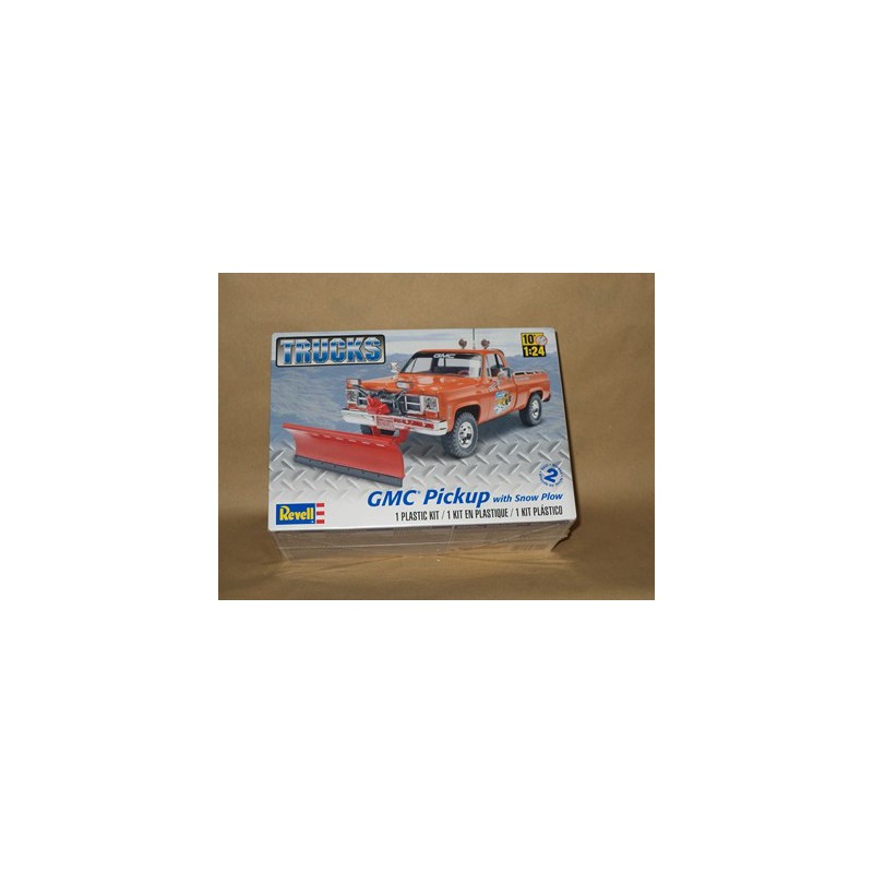 Le pick-up GMC est une bonne base pour un chasse-neige grâce à sa motorisation 4 roues motrices et à son moteur V8 de 350 chevaux. La maquette voiture Revell au 1/24 propose des pièces chromées et le chasse-neige, l'arceau et les phares de toit en option, réf: 85-7222