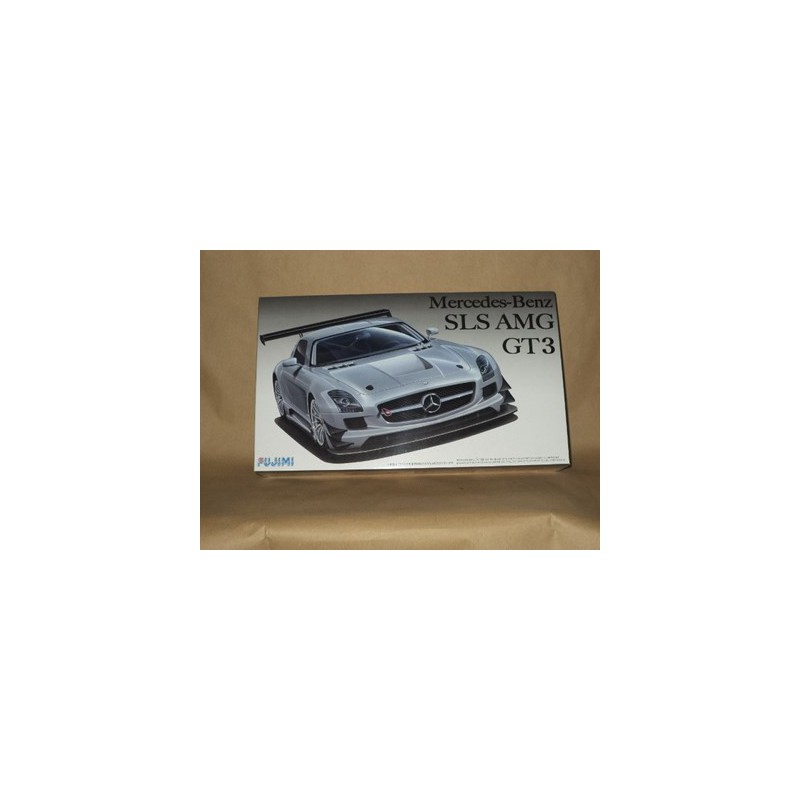 La Mercedes-Benz SLS AMG GT3 est une version élaborée pour le championnat GT3. Elle se distingue de la version route par un aileron arrière, un extracteur et divers appendices aérodynamiques. De plus, elle est moins lourde d'environ 300 kg... La maquette voiture Fujimi au 1/24 reproduitla série spéciale 45ème anniversaire limitée à 5 exemplaires diffusée en 2012. Elle se démarque notamment par une peinture gris mat spécifique, un arceau peint en gris anthracite mat. La console centrale et le tableau de bord sont décorés en fibre de carbone mate, réf: 125695