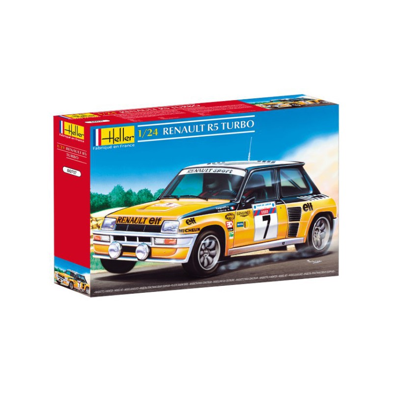 Dérivée d'une coque de R5 Alpine modifiée par le carrossier Heuliez, la Renault 5 Turbo fut présentée sous forme de "concept-car"au Salon de l'Automobile de Paris 1978. Avec cette voiture, Renault-Sport ne participa qu'à certaines manches du championnat du Monde des Rallyes 1982, sélectionnées en fonction de leur impact commercial ou publicitaire. La maquette voiture Heller au 1/24 mesure 155mm, réf: 80717