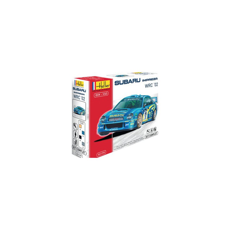 Apparue en essais privés quelques semaines avant le départ du rallye Monte-Carlo 2001, la nouvelle « Subaru Imprezza WRC » provoqua une certaine surprise, s'agissant d'une berline quatre portes, contrairement au modèle précédent. Sa mise au point sera beaucoup plus longue que prévu et après un an de compétition, l'écurie Subaru Prodrive souhaitait confirmer lors du Tour de Corse 2002 le potentiel de la voiture sur asphalte. Les conditions météorologiques extrêmement variables qui ont caractérisé le rallye ont surpris l'ensemble des pilotes du plateau du Championnat du Monde. Pilote de la n°10, Markko Martin abandonne sur aquaplaning lors de la dixième spéciale. Finalement Peter Solberg, au volant de la n°11 se hisse à la cinquième place du général, premier après 3 Peugeot et 1 Citroën. Cette cinquième place confirme les qualités propres du pilote constatées lors du rallye de Monte Carlo, et celles de la Subaru Imprezza WRC, qualités qui seront confirmées rallye après rallye. La maquette voiture Heller au 1/43 est un kit comprenant colle, peintures et pinceau et se compose de 28 pièces, réf: 50199