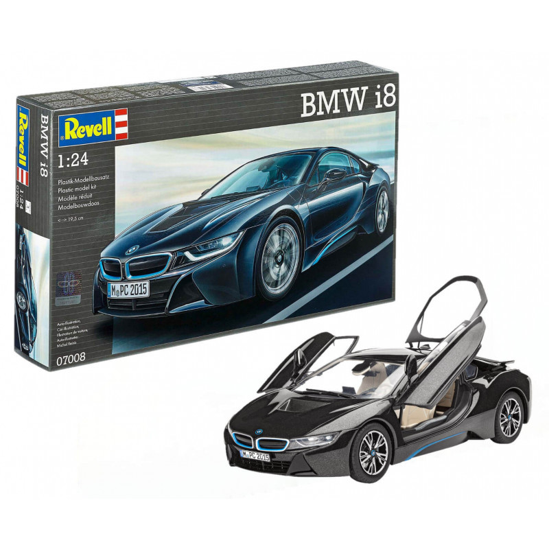 La BMW i8 est un superbe coupé 2+2 hybride rechargeable qui sinscrit pleinement dans la gamme i. Elle allie la sensibilité pour le développement durable et la sportivité dans une voiture premium. La maquette voiture 1/24 reproduit ce modèle, réf : 07008