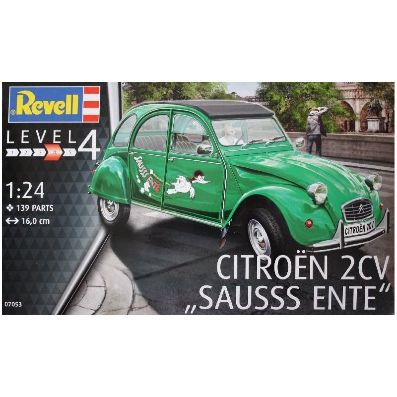 La 2 cv de Citroën est la voiture française populaire par excellence. La maquette voiture Revell au 1/24 propose la décoration "Sauss Ente", réf: 07053