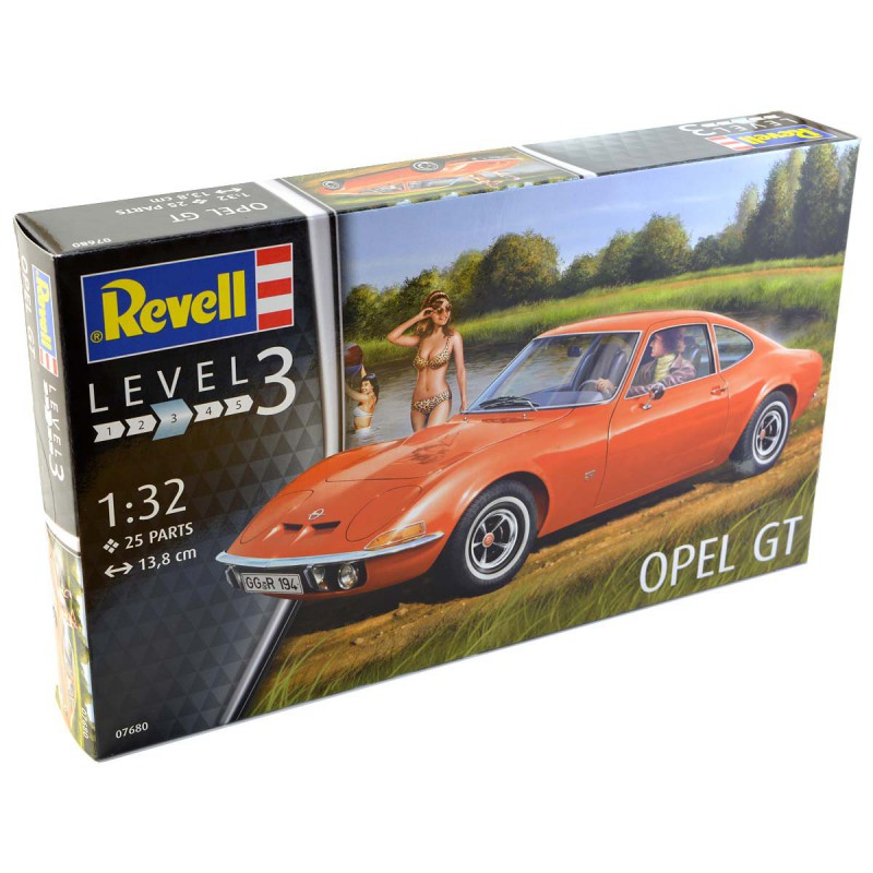 L'Opel GT est une voiture de sport coupé deux places produite par Opel à partir de 1968. Sa ligne rappelle incontestablement la Corvette de la même année. La maquette voiture Revell au 1/32 reproduit fidèlement le modèle, réf: 07680