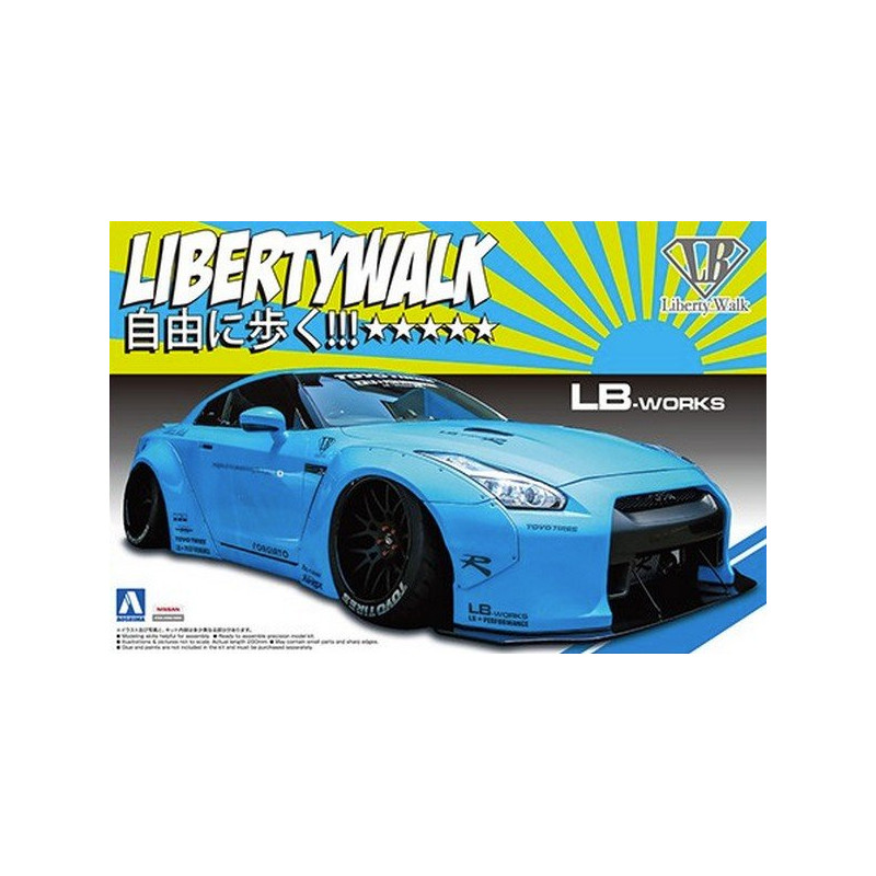 La Nissan GT-R revue et élargie par Liberty Walk est l’une des plus connues dans la sphère du tuning haut de gamme. La maquette voiture Aoshima au 1/24 reproduit un de ces modèles, réf: 05402
