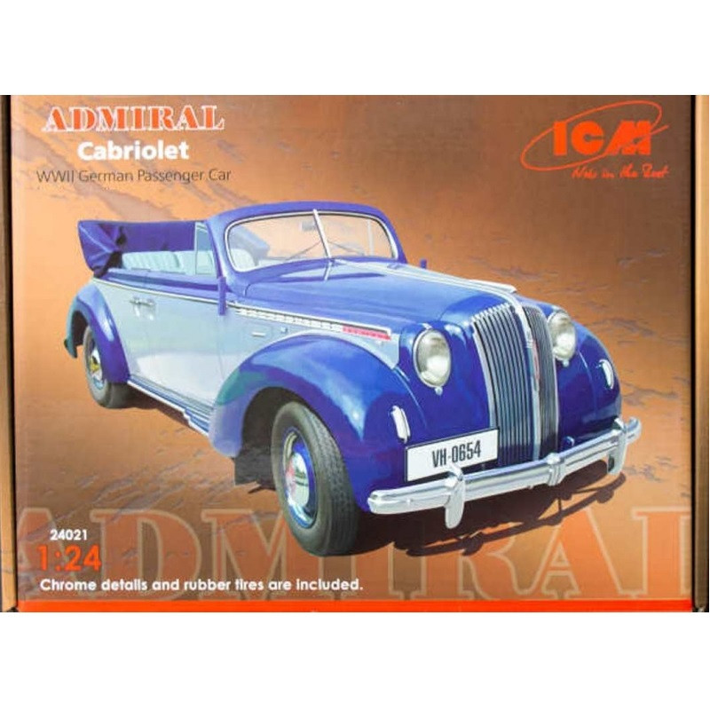 L'Opel Admiral est une voiture de luxe de la marque allemande Opel produite entre 1937 et 1939. La maquette voiture ICM au 1/24 reproduit un modèle cabriolet, réf: 24021