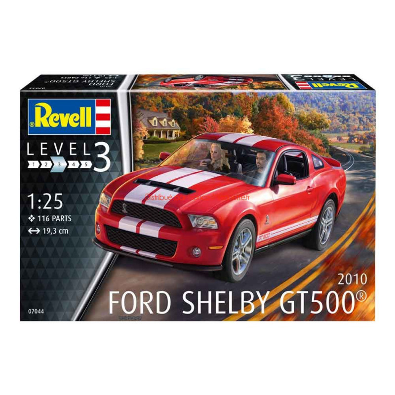 La « Shelby GT 500 » est née en 1967. En 2005, la GT 500 fait son grand retour, présentée par Ford au Salon de New York, elle est basée sur la Ford Mustang d'alors. La maquette voiture Revell au 1/25 propose le modèle de 2010, réf: 07044
