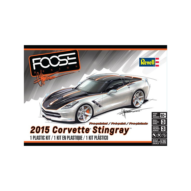 La Chevrolet Corvette est une famille d'automobiles sportives produites par la marque américaine Chevrolet. La maquette voiture Revell au 1/25 propose un modèle C7 de 2015 en version Stingray et préparé par "Foose", réf: 85-4397