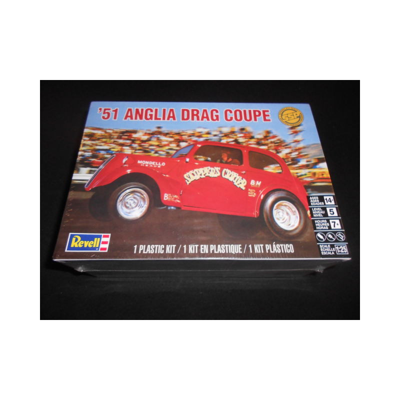 La Ford Anglia est un modèle de voiture du constructeur automobile américain Ford produit en Grande-Bretagne de 1938 à 1967. La maquette voiture Revell au 1/25 propose un modèle de 1951 transformé en dragster, réf: 85-1269