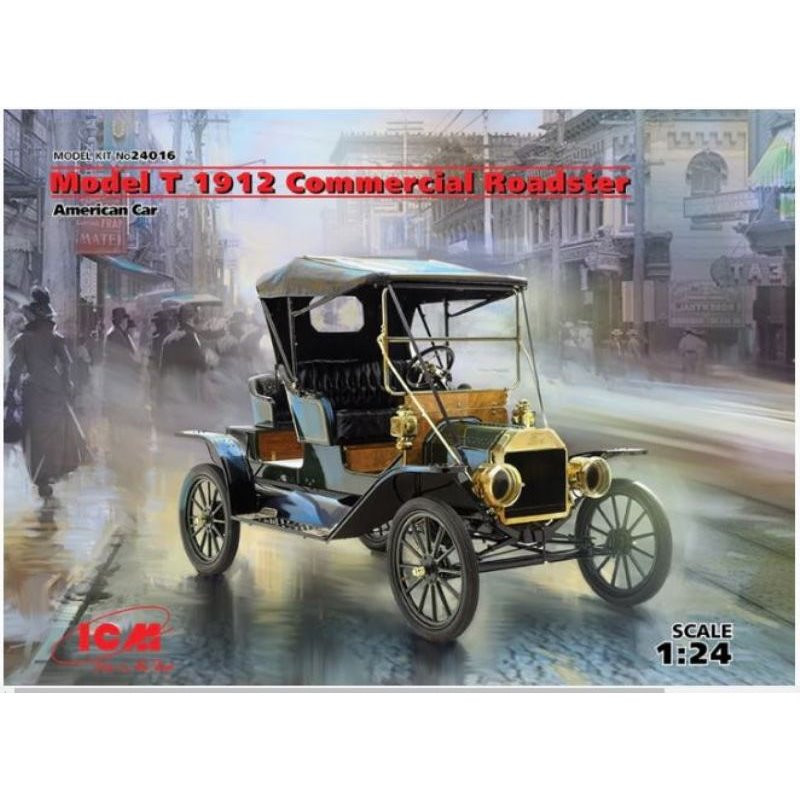 La Ford T est une automobile fabriquée de 1908 à 1927 par la Ford Motor Company sous la direction de Henry Ford. Elle est généralement considérée comme la première voiture accessible au plus grand nombre, celle qui « mit l'Amérique sur des roues ». La maquette voiture ICM au 1/24 reproduit le modèle Roadster commercial de 1912, réf : 24016