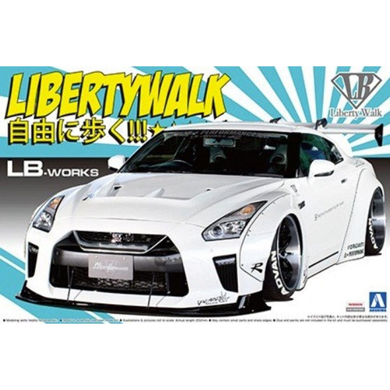 La Nissan GT-R revue et élargie par Liberty Walk est l’une des plus connues dans la sphère du tuning haut de gamme. La maquette voiture Aoshima au 1/24 reproduit un de ces modèles, réf: 05590