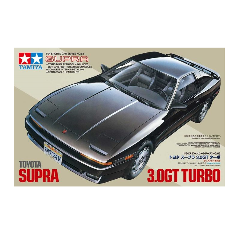 La Toyota Supra est une voiture de grand tourisme produite par le constructeur automobile japonais Toyota de 1979 jusqu'en 2002, puis à partir de 2019. La maquette voiture Tamiya au 1/24 propose une reproduction de ce modèle, réf: 24062