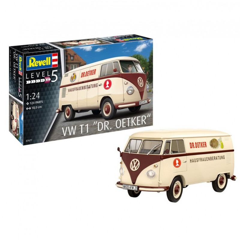 Le mot de « Combi » est l'abréviation du mot allemand Kombinationenwagen, que l'on peut traduire par « multi-usage » et devient, en France seulement, le surnom de la version la plus répandue de la fourgonnette Volkswagen. La maquette voiture Revell au 1/24 propose un moteur détaillé, un capot et des roues mobile et une décoration "Dr. Oetker", réf: 07677