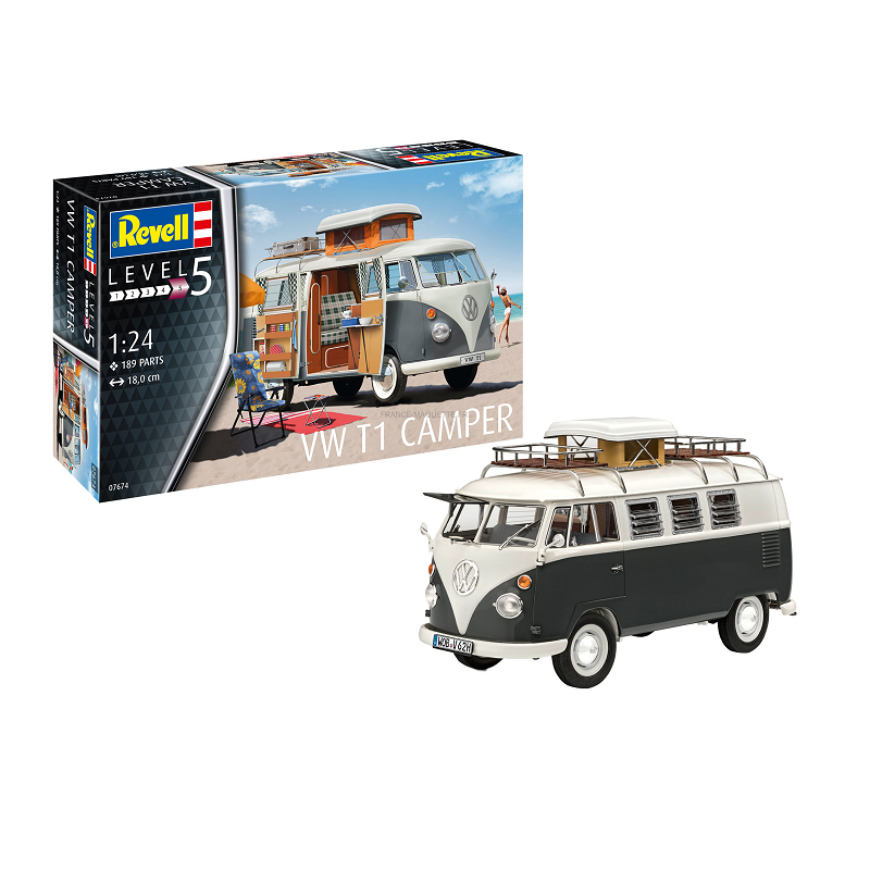 Le Volkswagen Type 1 est la premièree lignée de véhicules motorisés présentée par le constructeur automobile allemand Volkswagen en 1947. Il est développé peu après en camping-car dans le cadre de la gamme Volkswagen Westfalia Camper. La maquette voiture Revell au 1/24 propose une version très détaillée, réf: 07674