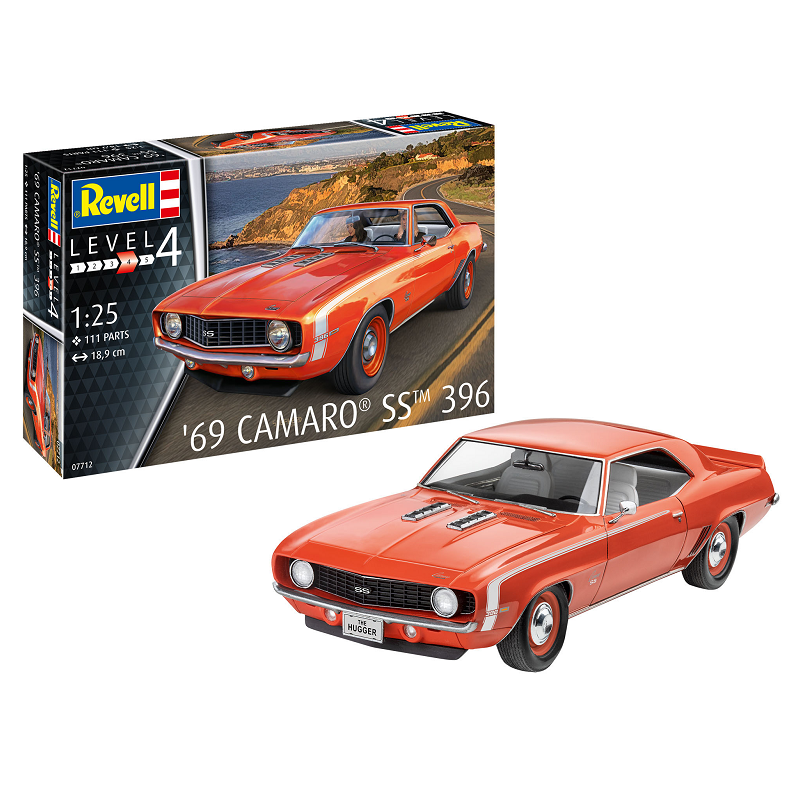 Avec plus de 250.000 exemplaires vendus, la Camaro de 1969 est considérée comme la Pony Car la plus réussie de la première génération de Chevrolet, la version SS étant la variante haut de gamme. La maquette voiture Revell au 1/25 propose une reproduction de ce modèle iconique, réf: 07712