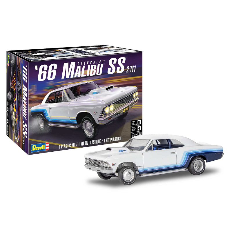 La Malibu (nommée en l’honneur de la ville côtière de Malibu, Californie) est un véhicule de type intermédiaire du constructeur automobile américain Chevrolet, propriété de General Motors. La maquette voiture Revell au 1/24 propose la version de 1966, réf: 85-4520
